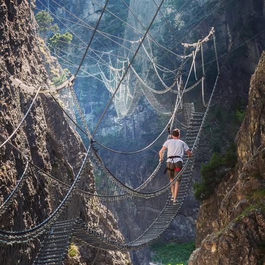 Sfida l'altezza del Ponte Tibetano Claviere, tra i più lunghi al mondo! Pareti rocciose, cascate e vette sopra 3000m tutto intorno a vo️i🏔️